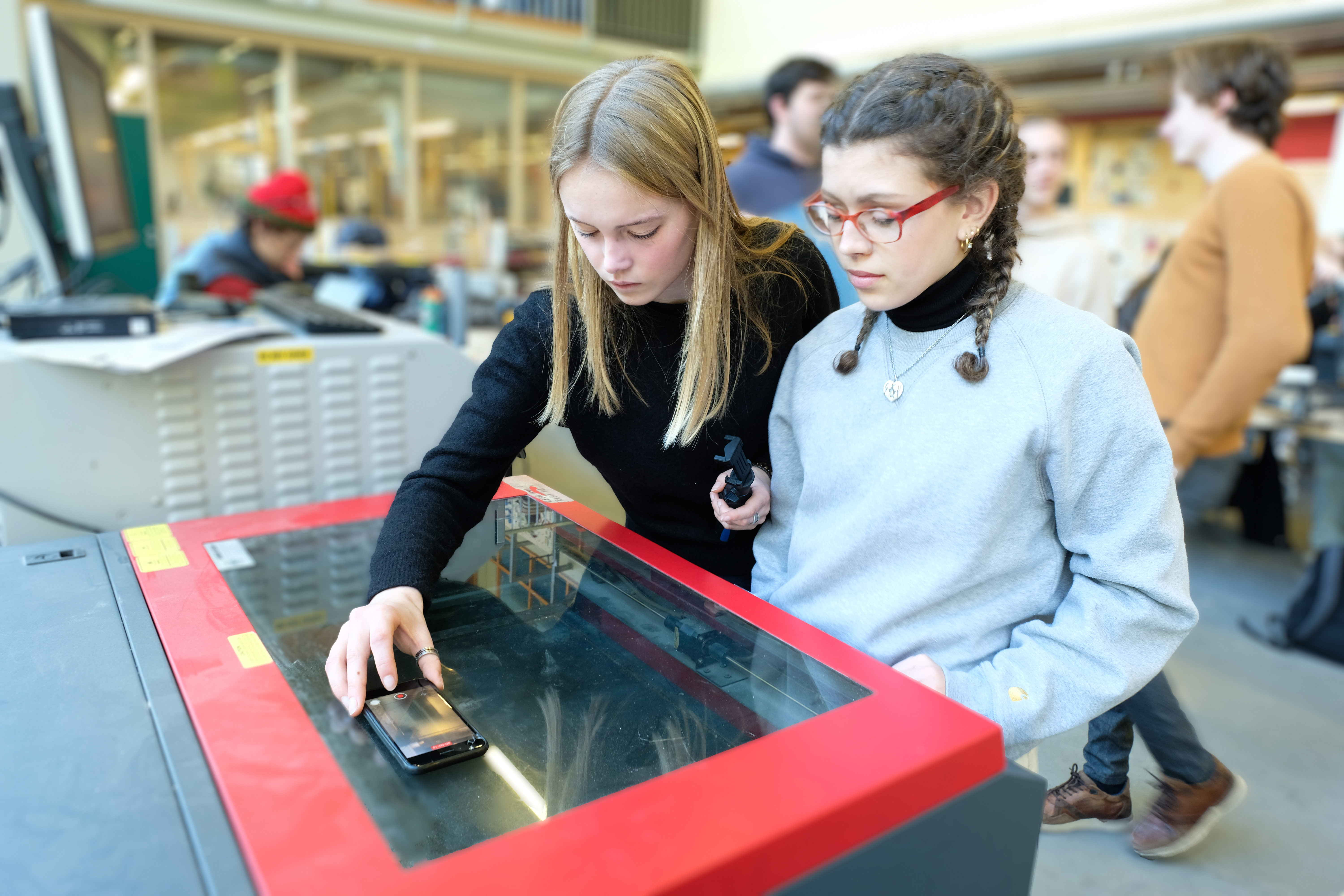 “Toen ik studeerde, was er een heel klein 3-assig CNC systeem. En in de loop van de jaren zijn er 3D-printers, meer-assige CNC machines en lasersnijmachines bijgekomen waardoor het machinepark veel meer mogelijkheden biedt. Als je onze moderne toestellen weg zou halen zou dat het niveau [red: van de prototypes die studenten maken] daadwerkelijk omlaag halen. En als onze lasersnijmachine om wat voor reden dan ook 3 dagen stil staat, dan is dat een ramp, zoveel wordt het gebruikt.